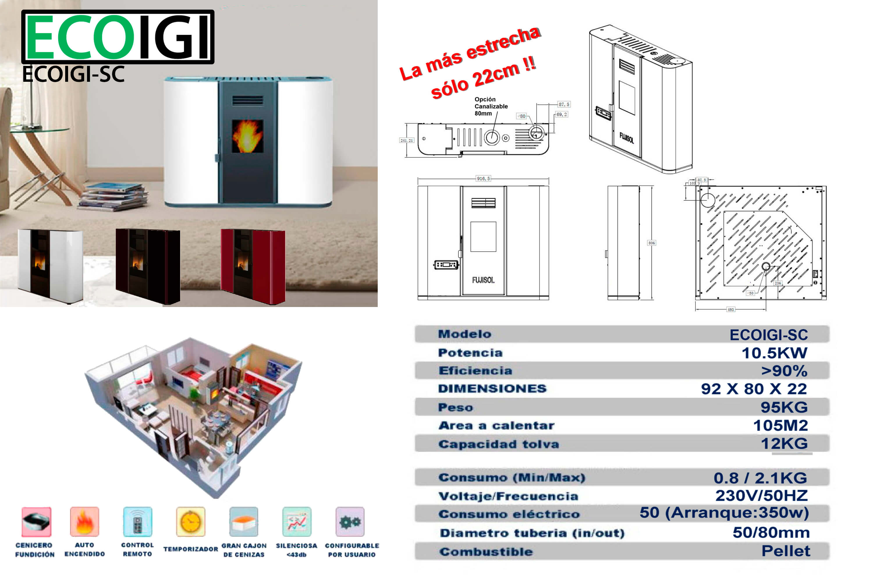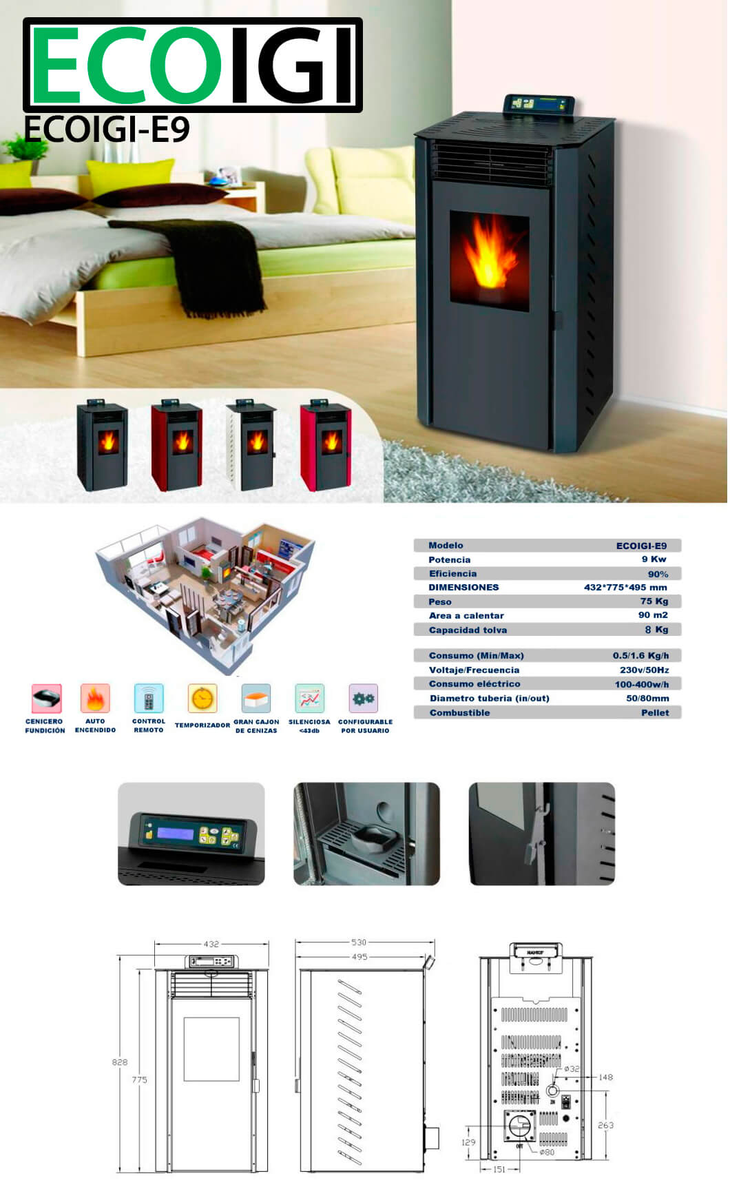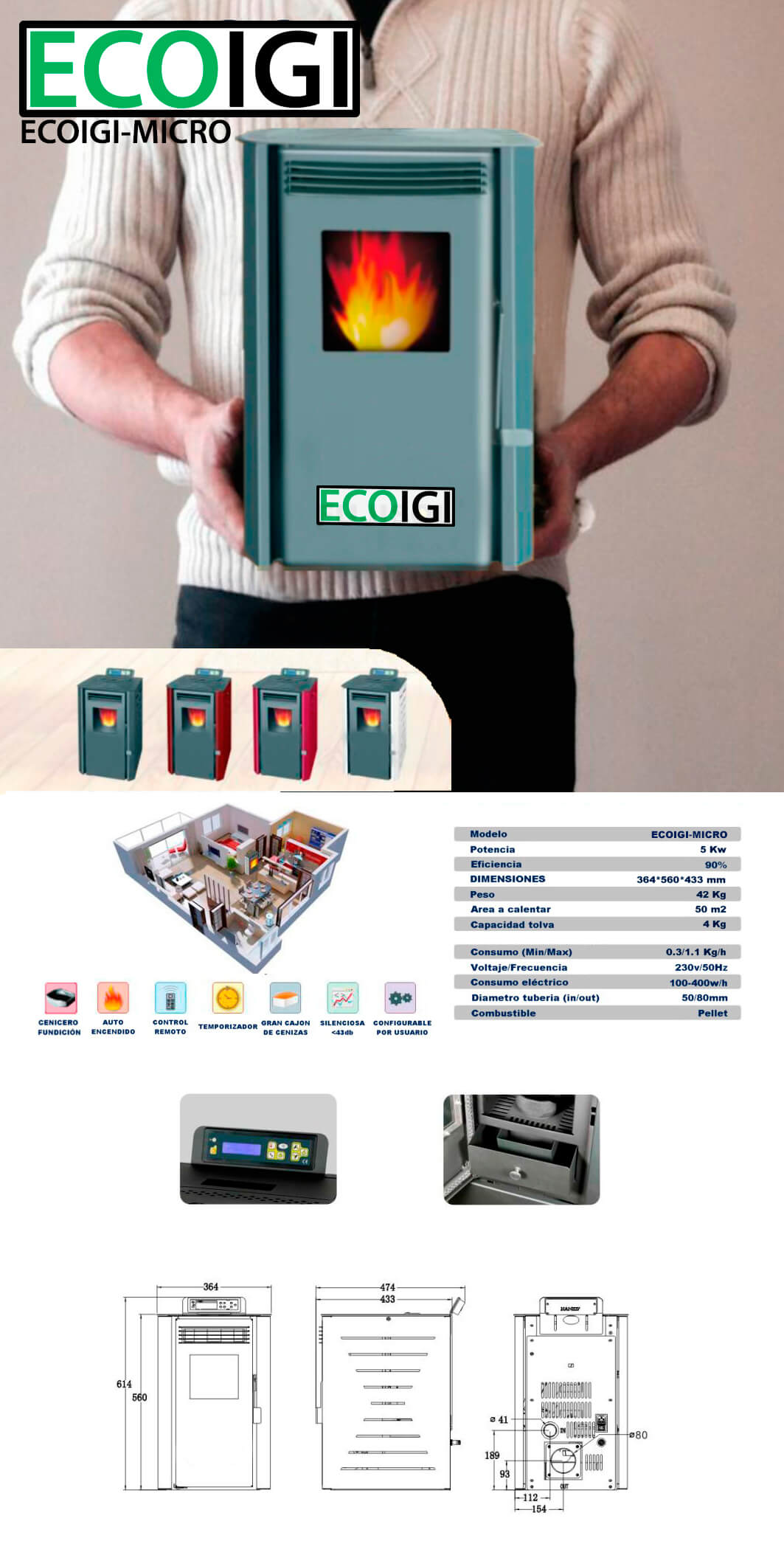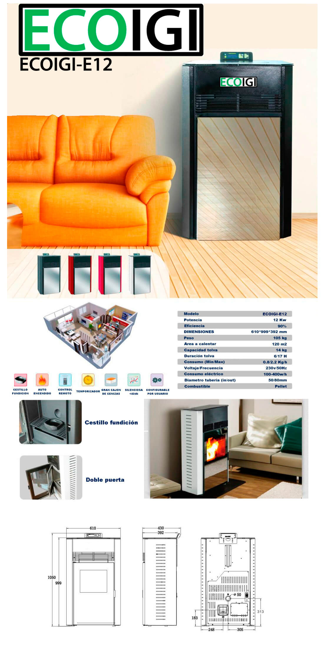 El manual contiene toda la información necesaria de nuestra gama de estufas ECOIGI.